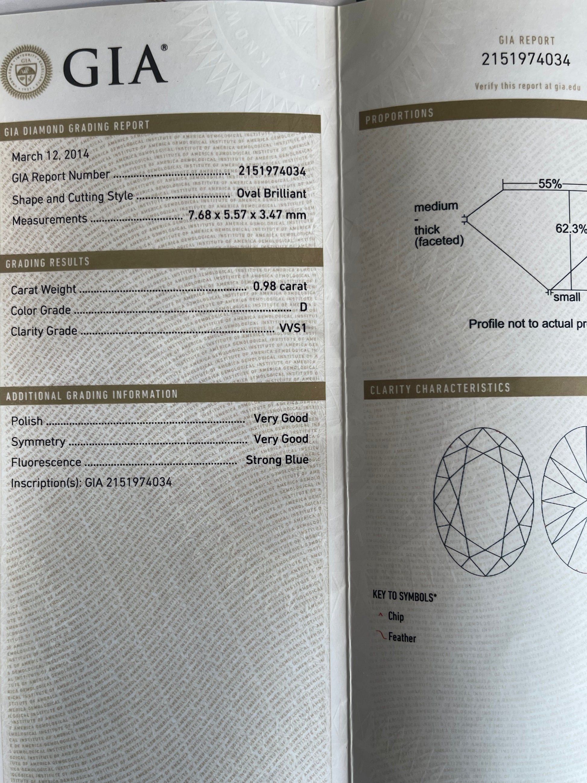 This 0.98 D-vvs. oval Gia diamond features exceptional clarity and a beautiful oval cut, making it a top choice for any engagement ring or jewelry piece. With a Gia certification, this diamond is guaranteed to be of the highest quality and value. Invest in a timeless and stunning piece with our 0.98 D-vvs. oval Gia diamond.