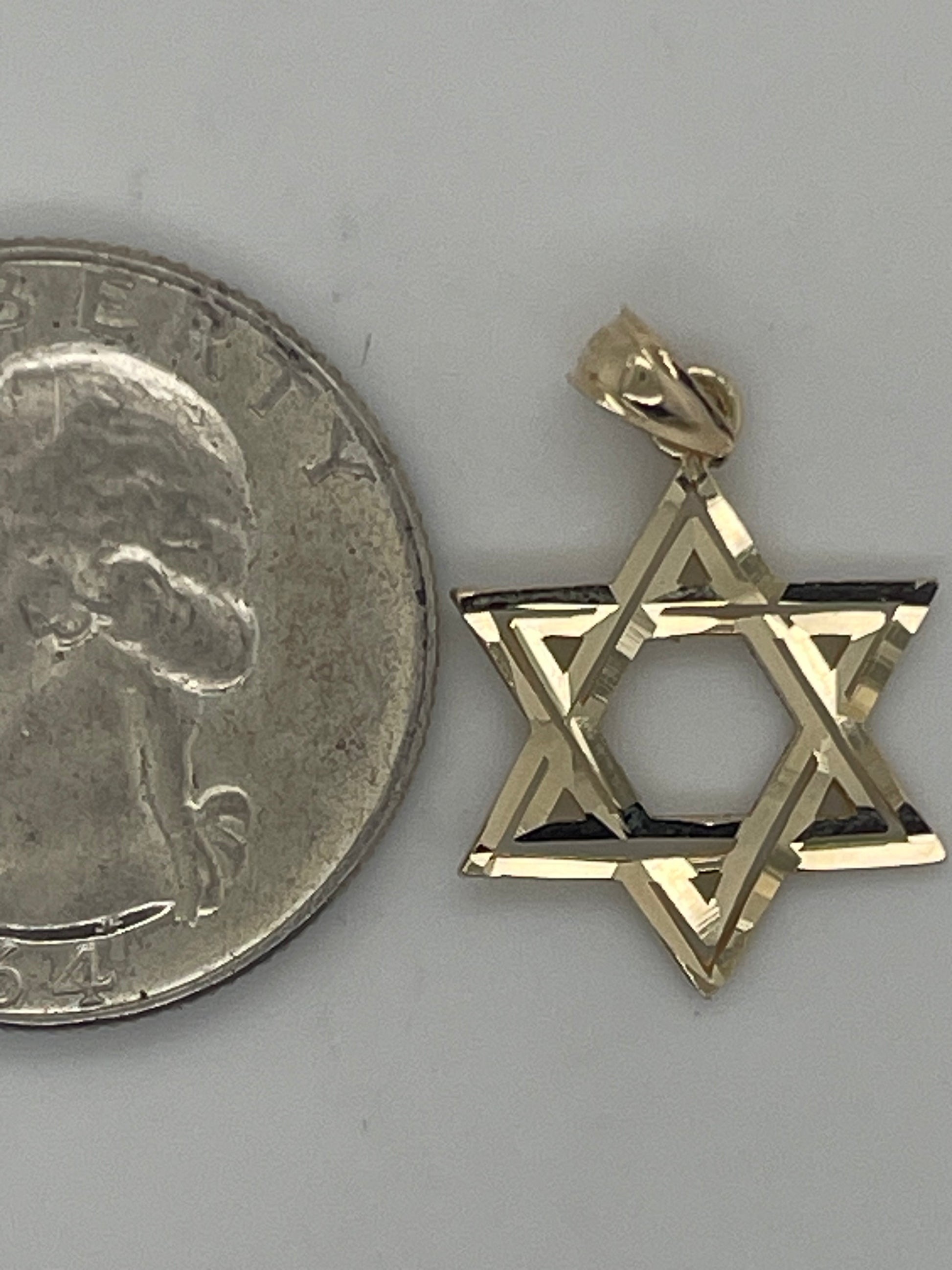 14k Star of David This elegant 14k Star of David pendant is a timeless expression of faith and devotion. Its delicate design and high-quality material make it a perfect everyday accessory or a cherished gift for a loved one. Show your support and style with this beautiful piece.