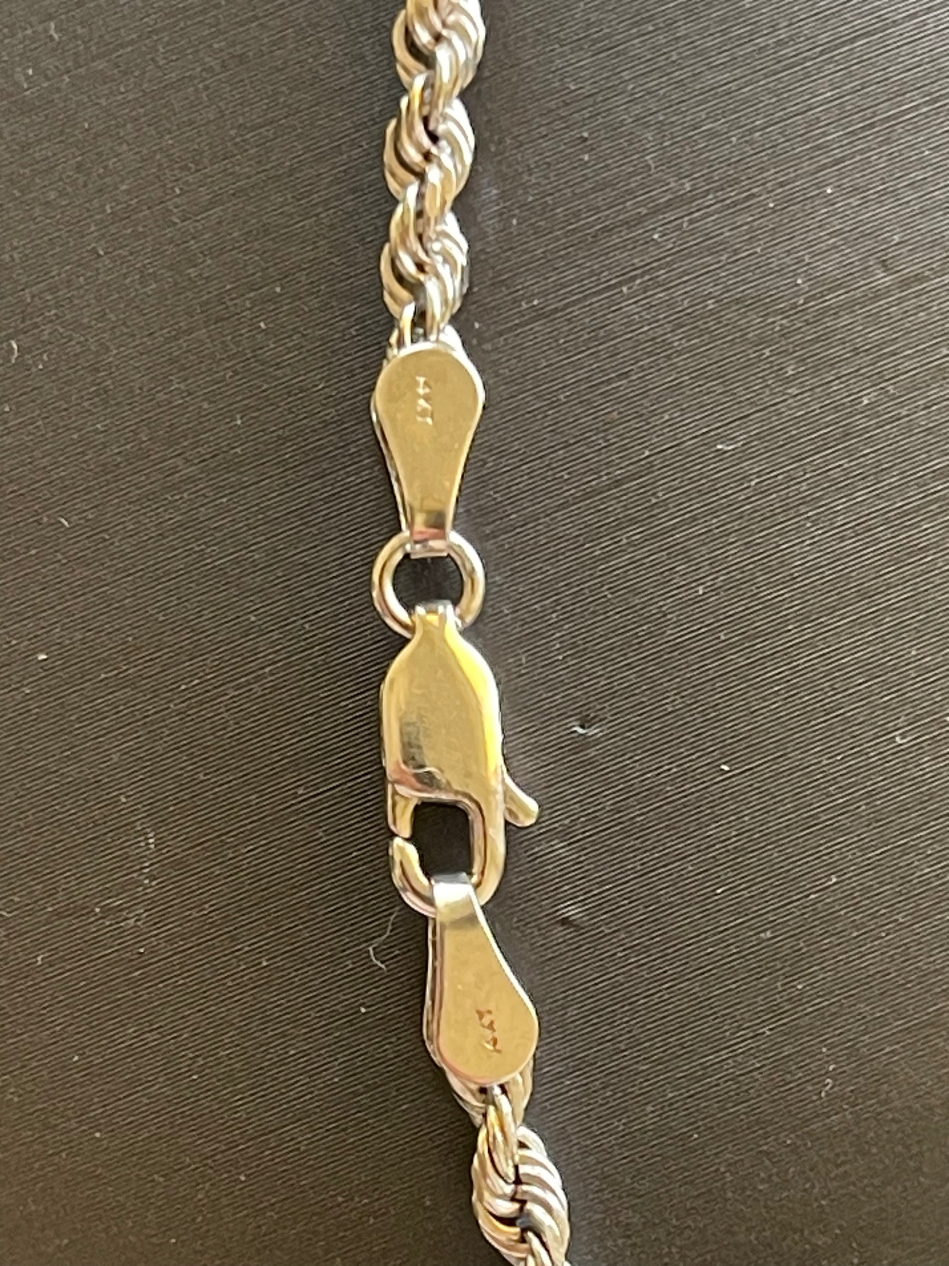 14 karat white gold rope chain 16 inch and 3 mm thick