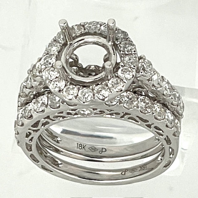 This 18kw setting is set with sparkling diamonds, creating a stunning and luxurious piece of jewelry. The 18-karat white gold setting adds a touch of elegance and sophistication to any outfit, making it the perfect accessory for any special occasion. Show off your style and class with this beautiful set.