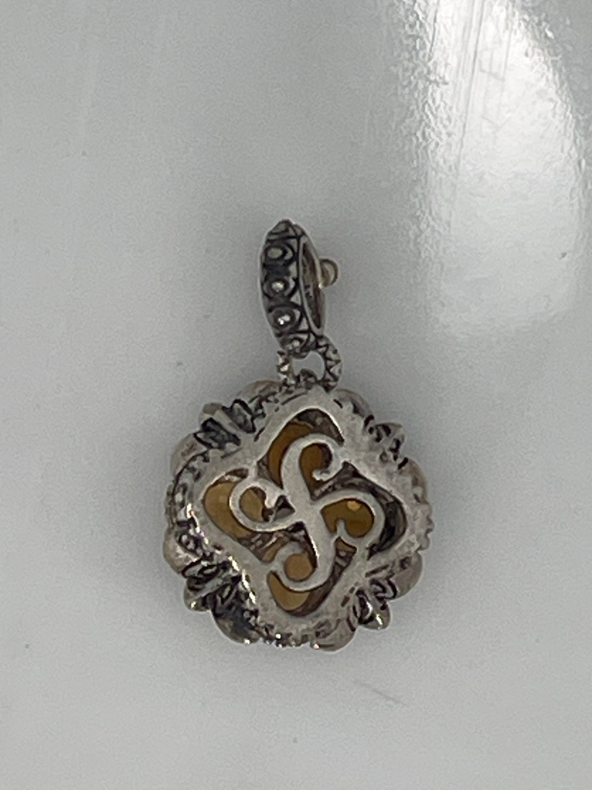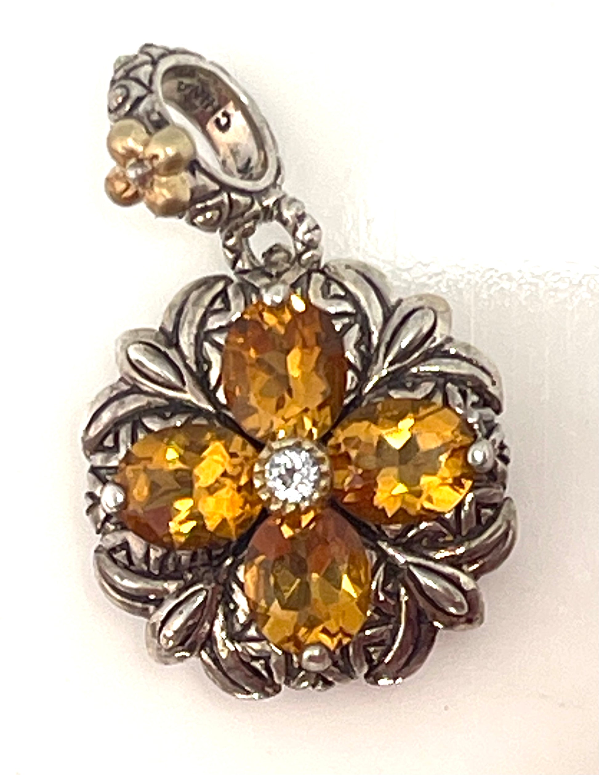 Barbara Bixby Flower Pendant Citrine White Topaz Signed 925 18K
