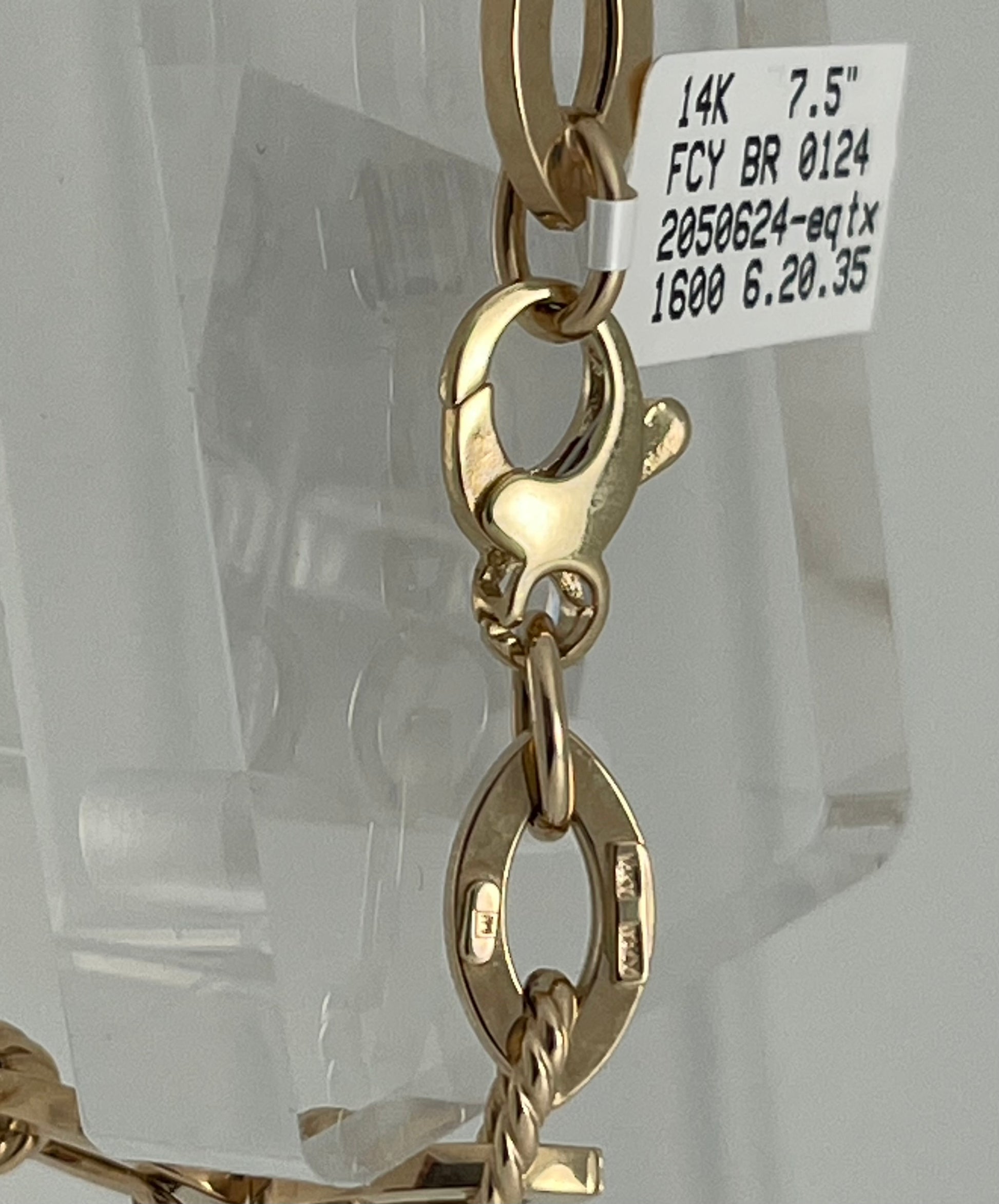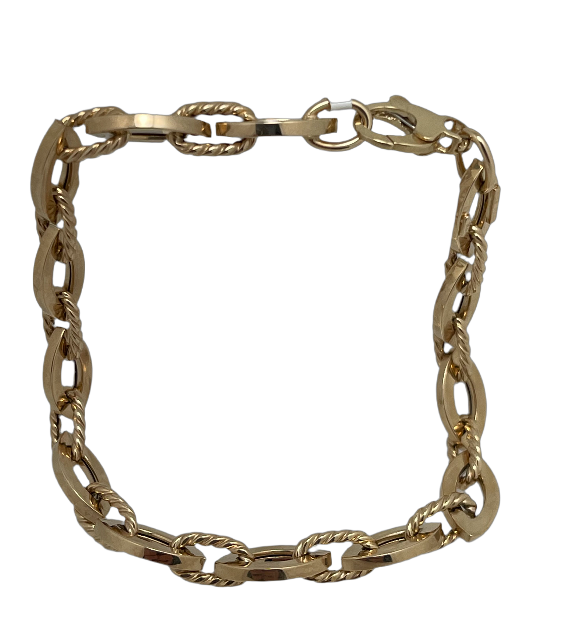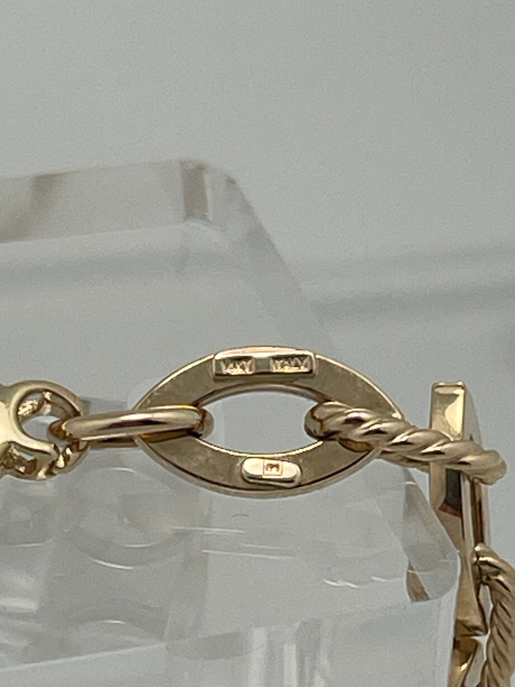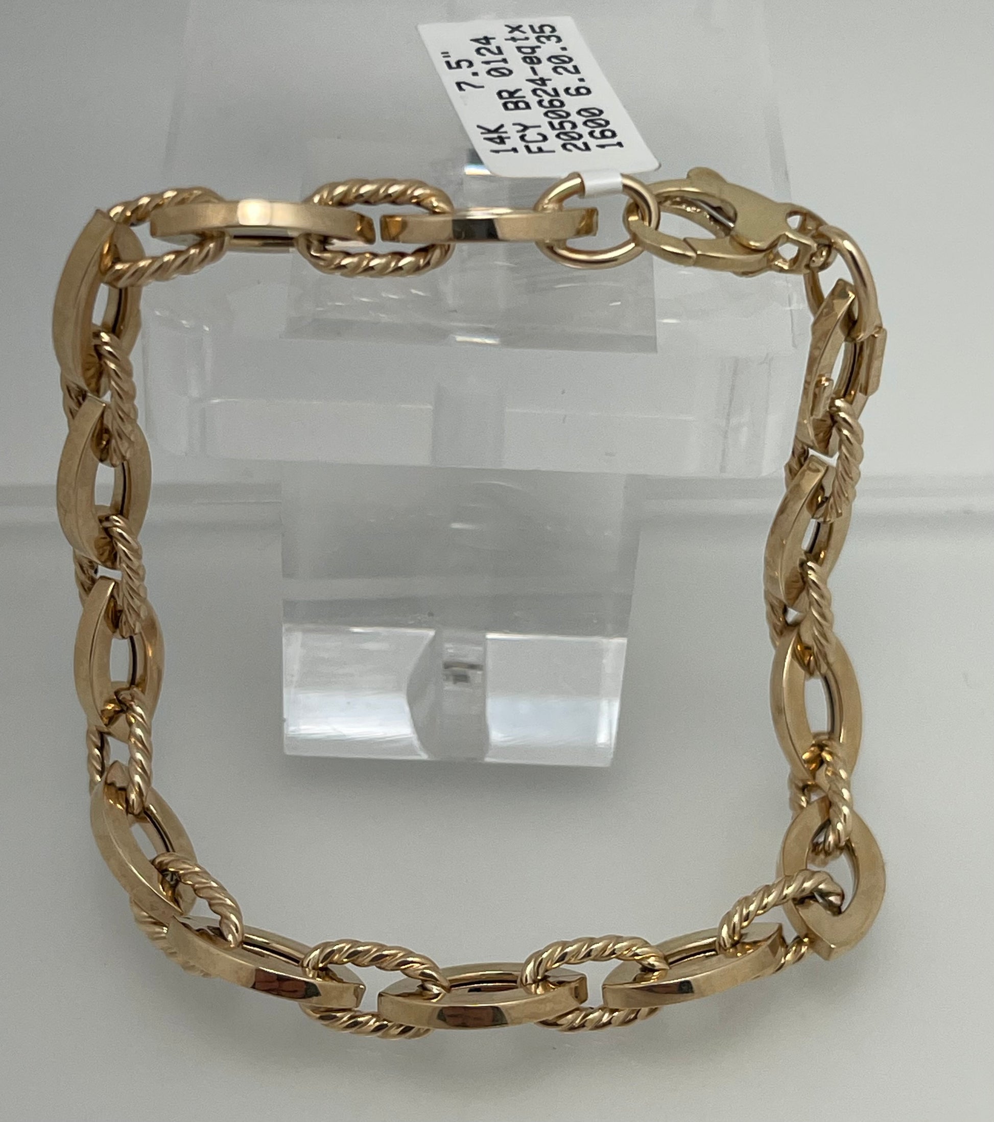 Discover the timeless elegance of our Italian fancy bracelet. Crafted with the utmost care and precision, this bracelet perfectly combines Italian craftsmanship with intricate design, making it a must-have accessory for any occasion. Elevate your style with the luxurious and sophisticated touch of this beautiful piece.This 14kt yellow bracelet from Italy is a must-have for anyone looking to add a touch of luxury to their jewelry collection. It is beautifully crafted with high-quality materials and exudes a sense of elegance and refinement. Don't miss out on the opportunity to elevate your style with this exquisite piece.