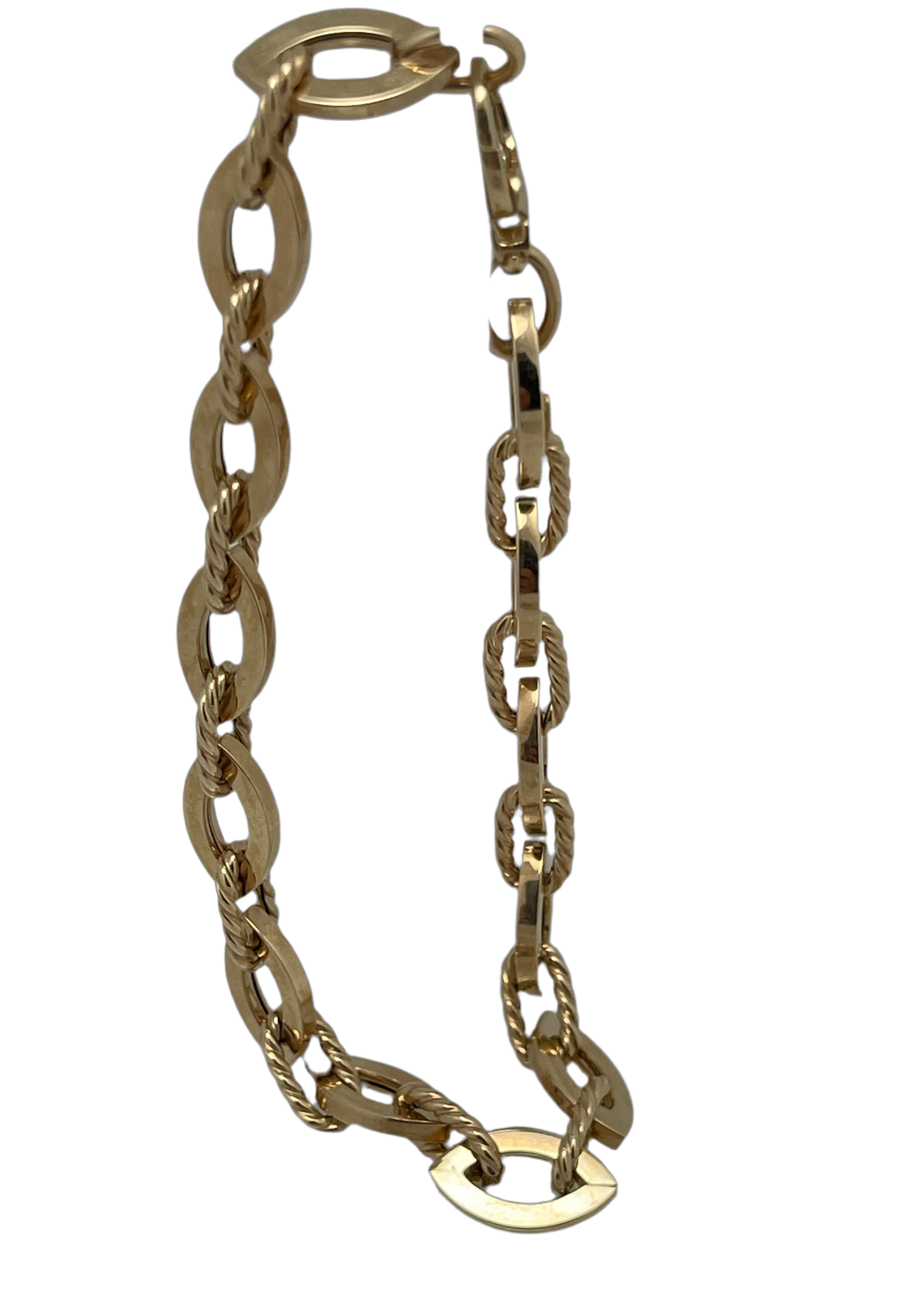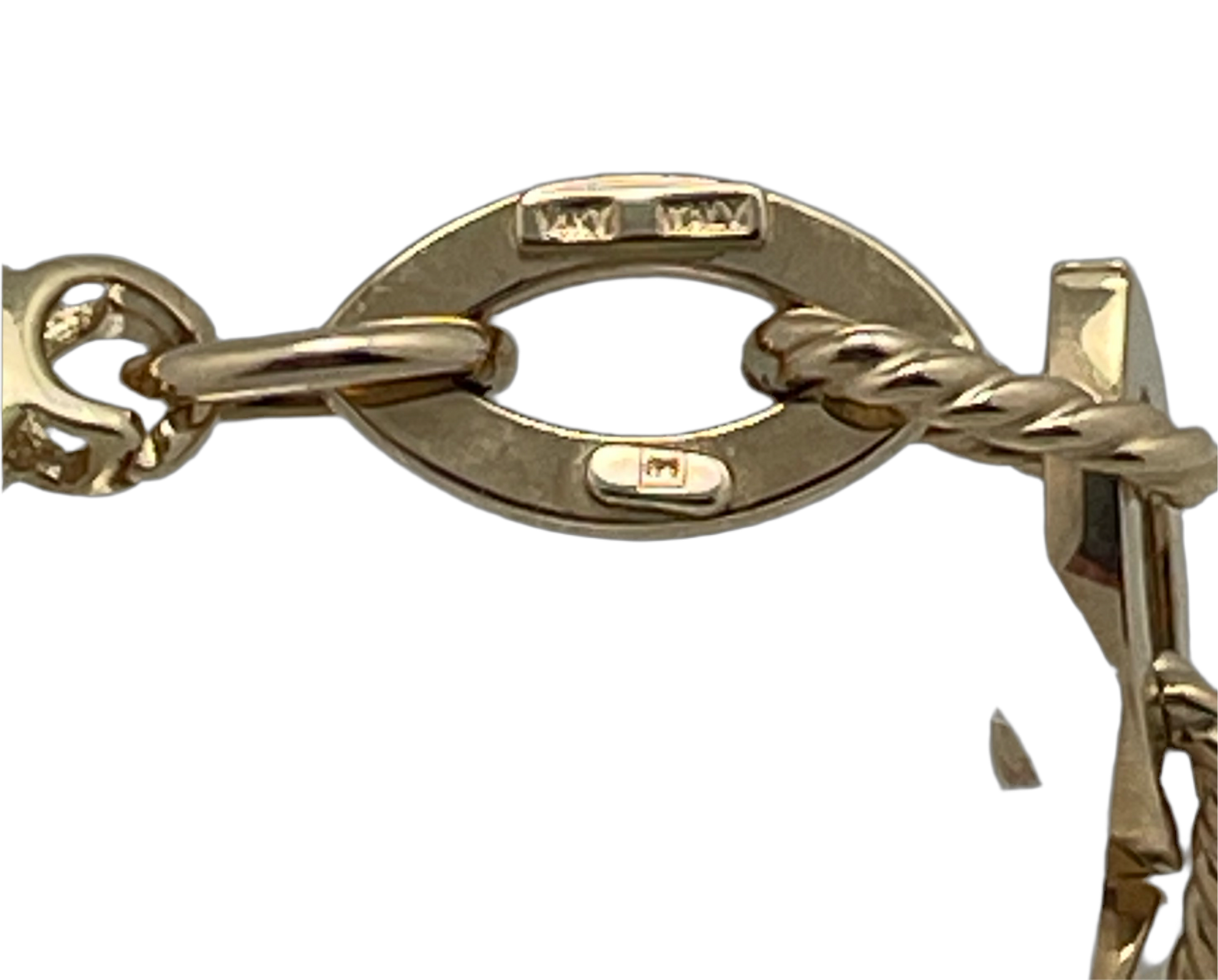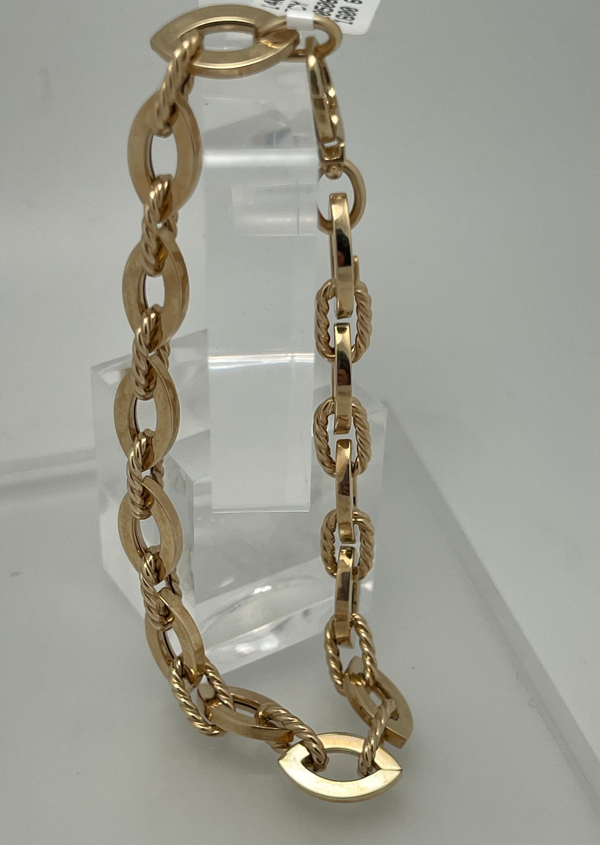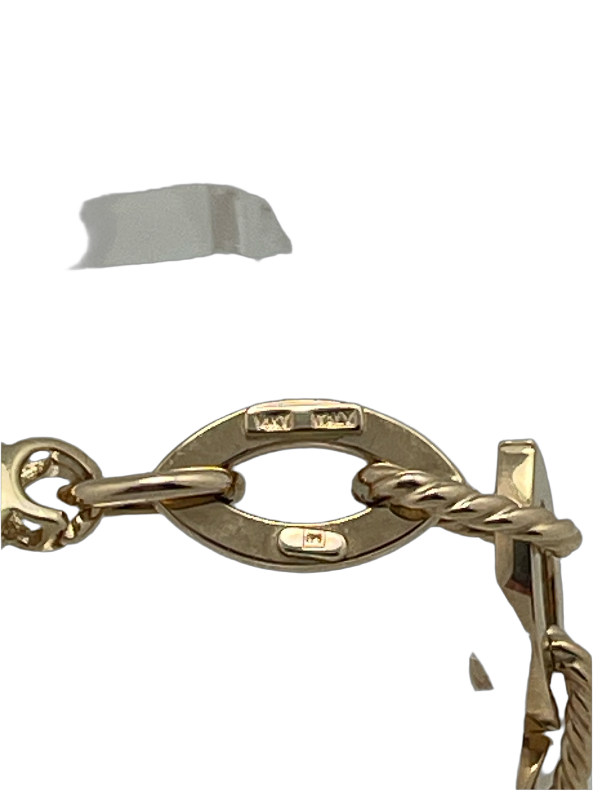 Discover the timeless elegance of our Italian fancy bracelet. Crafted with the utmost care and precision, this bracelet perfectly combines Italian craftsmanship with intricate design, making it a must-have accessory for any occasion. Elevate your style with the luxurious and sophisticated touch of this beautiful piece.This 14kt yellow bracelet from Italy is a must-have for anyone looking to add a touch of luxury to their jewelry collection. It is beautifully crafted with high-quality materials and exudes a sense of elegance and refinement. Don't miss out on the opportunity to elevate your style with this exquisite piece.