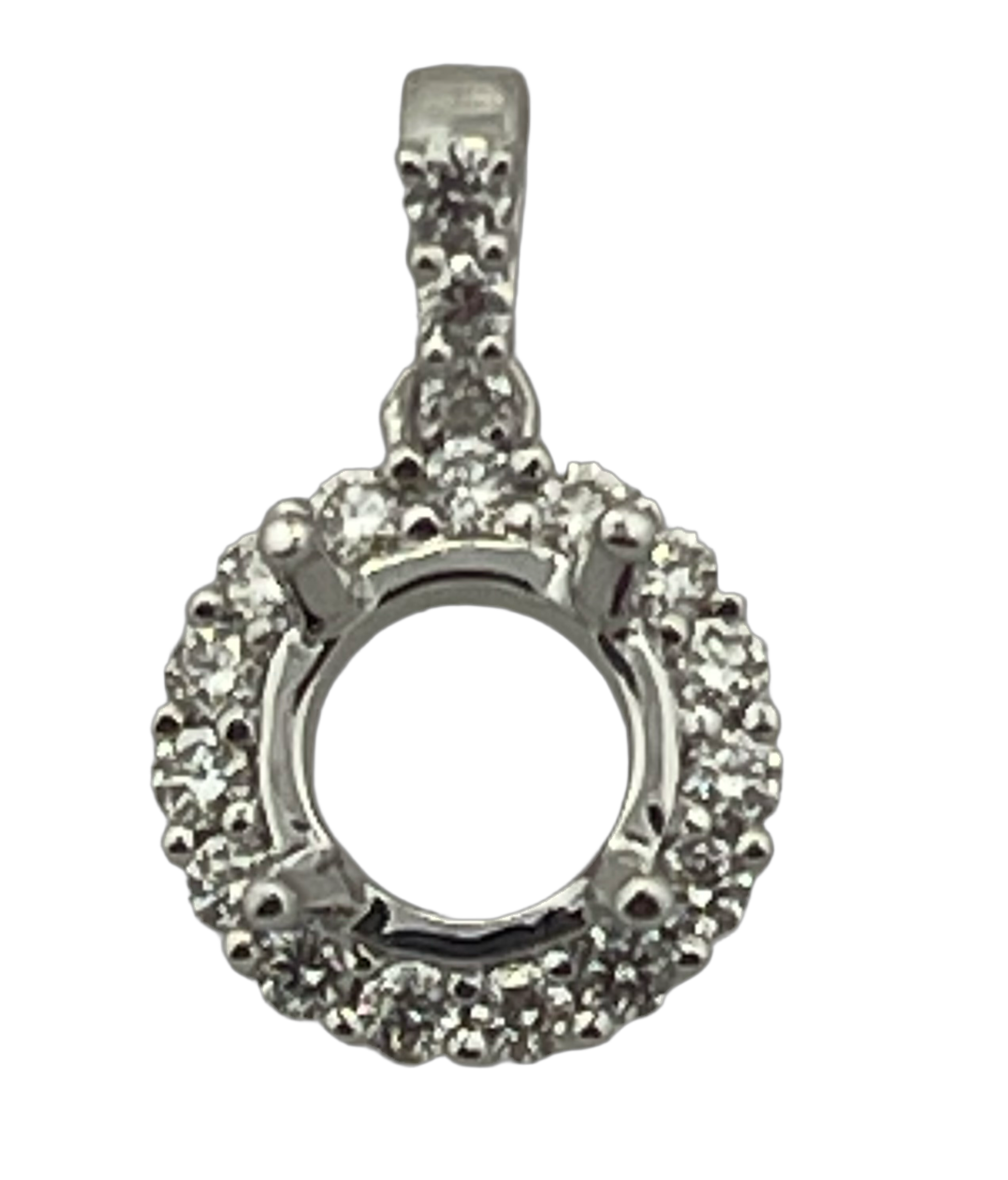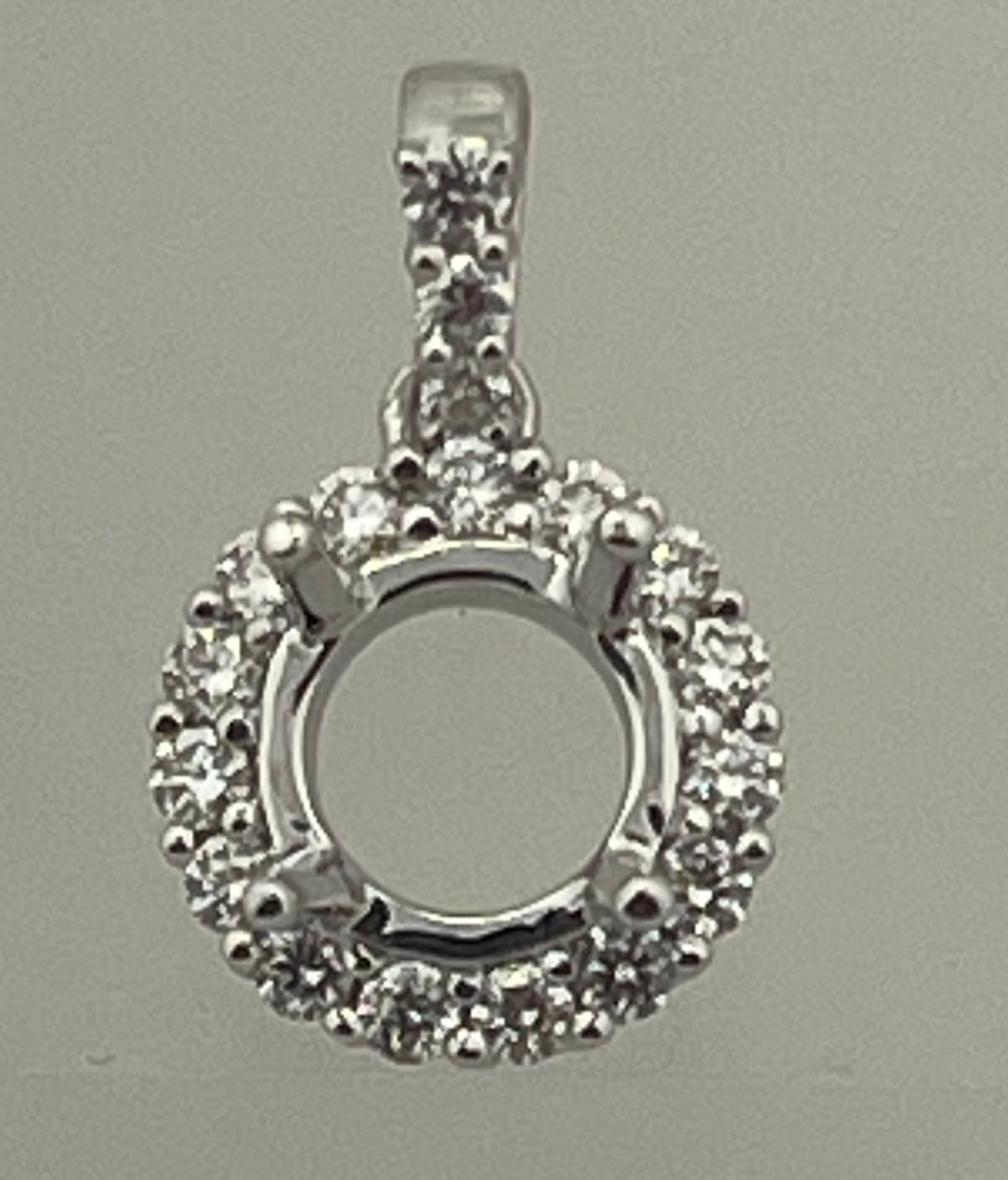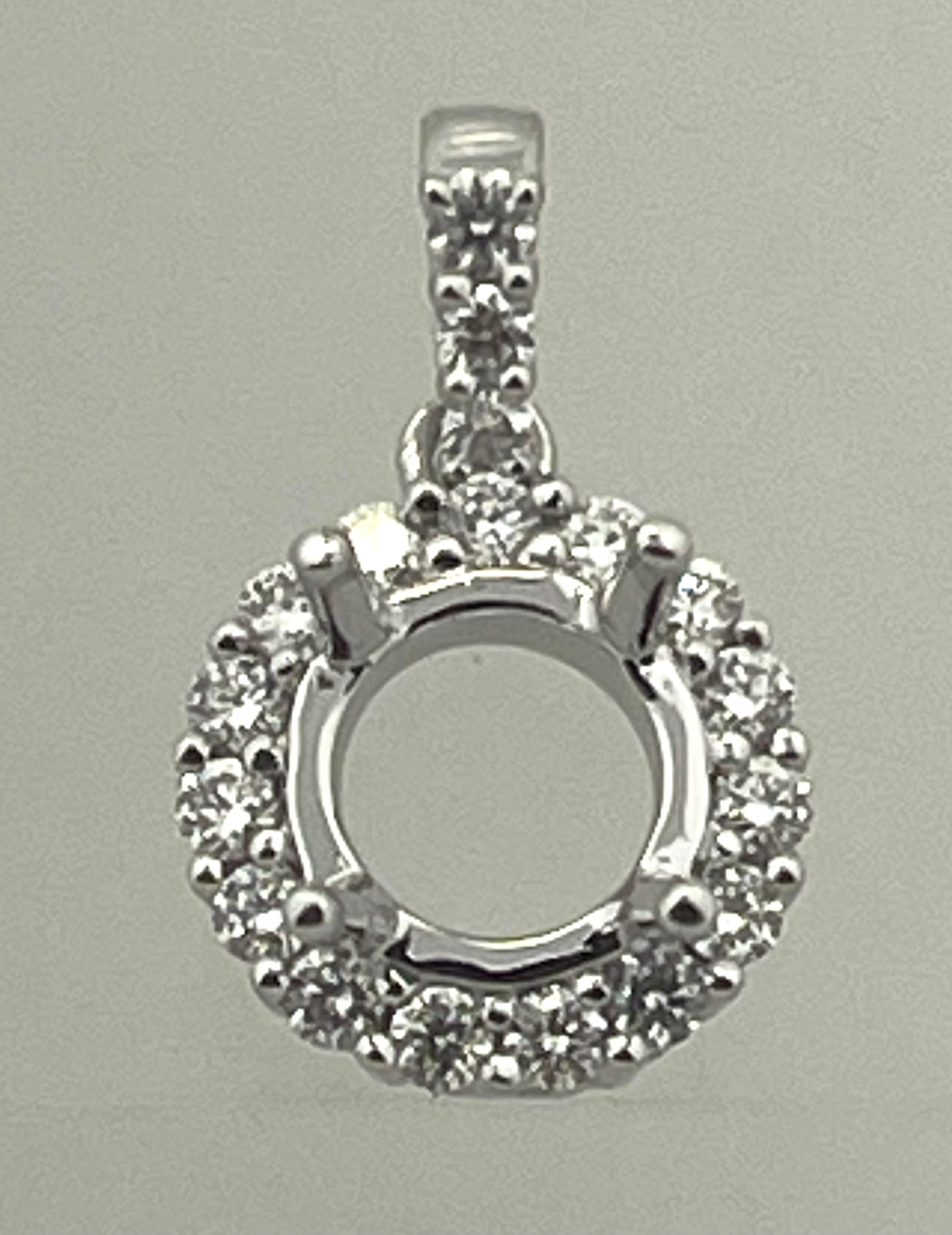 This Halo Round pendant mount is the perfect addition to any jewelry collection. Made of 14k white Gold, it features sparkling G-vs1 0.22 carat diamonds, adding an elegant touch to any outfit. With its lightweight design and superior craftsmanship, it is both beautiful and comfortable to wear.