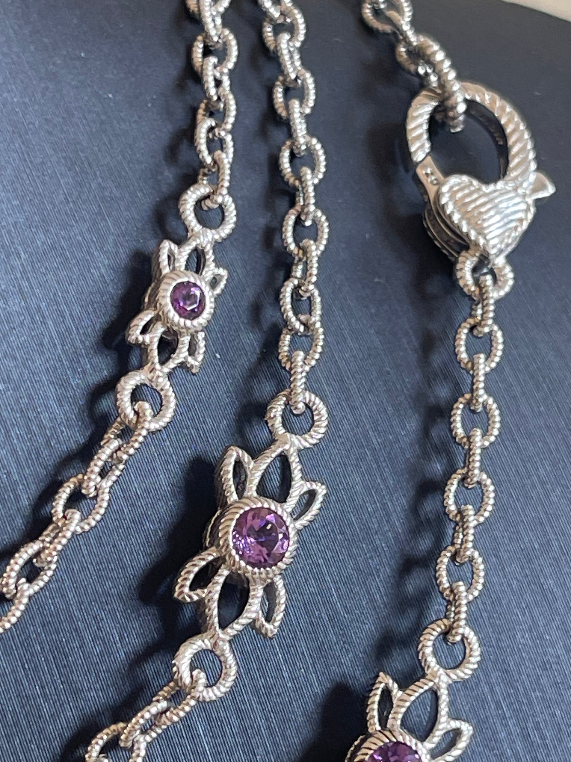 Judith Ripka 36” sterling silver necklaceExpertly crafted by Judith Ripka, this 36” sterling silver necklace is a must-have for any jewelry collection. Made with high-quality materials, this necklace exudes elegance and sophistication. Its versatile 36” length allows for various styling options, making it the perfect statement piece for any occasion. Upgrade your wardrobe with this timeless and luxurious necklace.