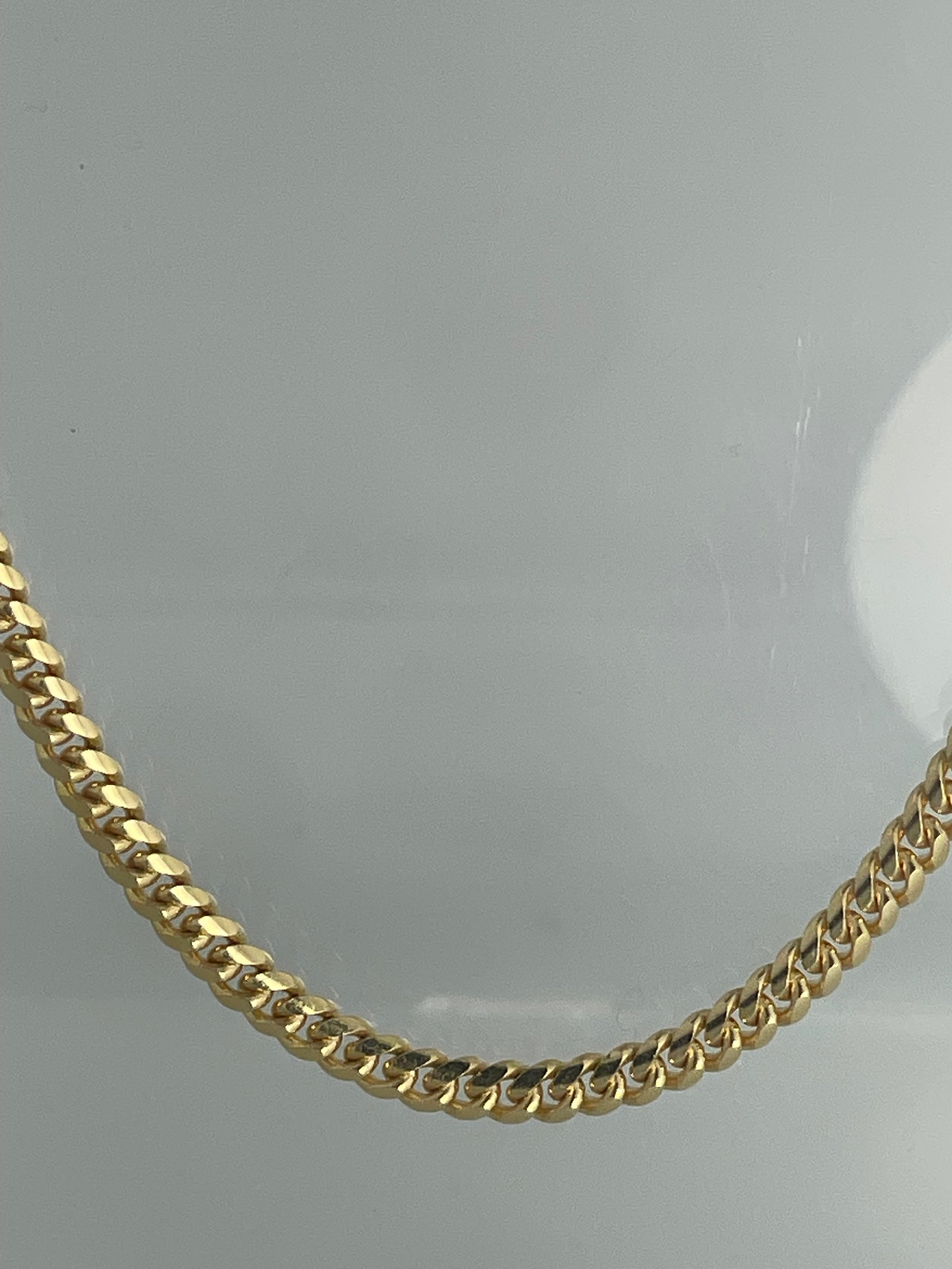 The Miami Cuban link chain is a classic and timeless jewelry piece. Crafted with precision, this 18" chain features a strong and durable 2.80mm design. Perfect for elevating any outfit, its intricate Miami Cuban link adds a touch of elegance and sophistication. Upgrade your style with this expertly crafted chain.