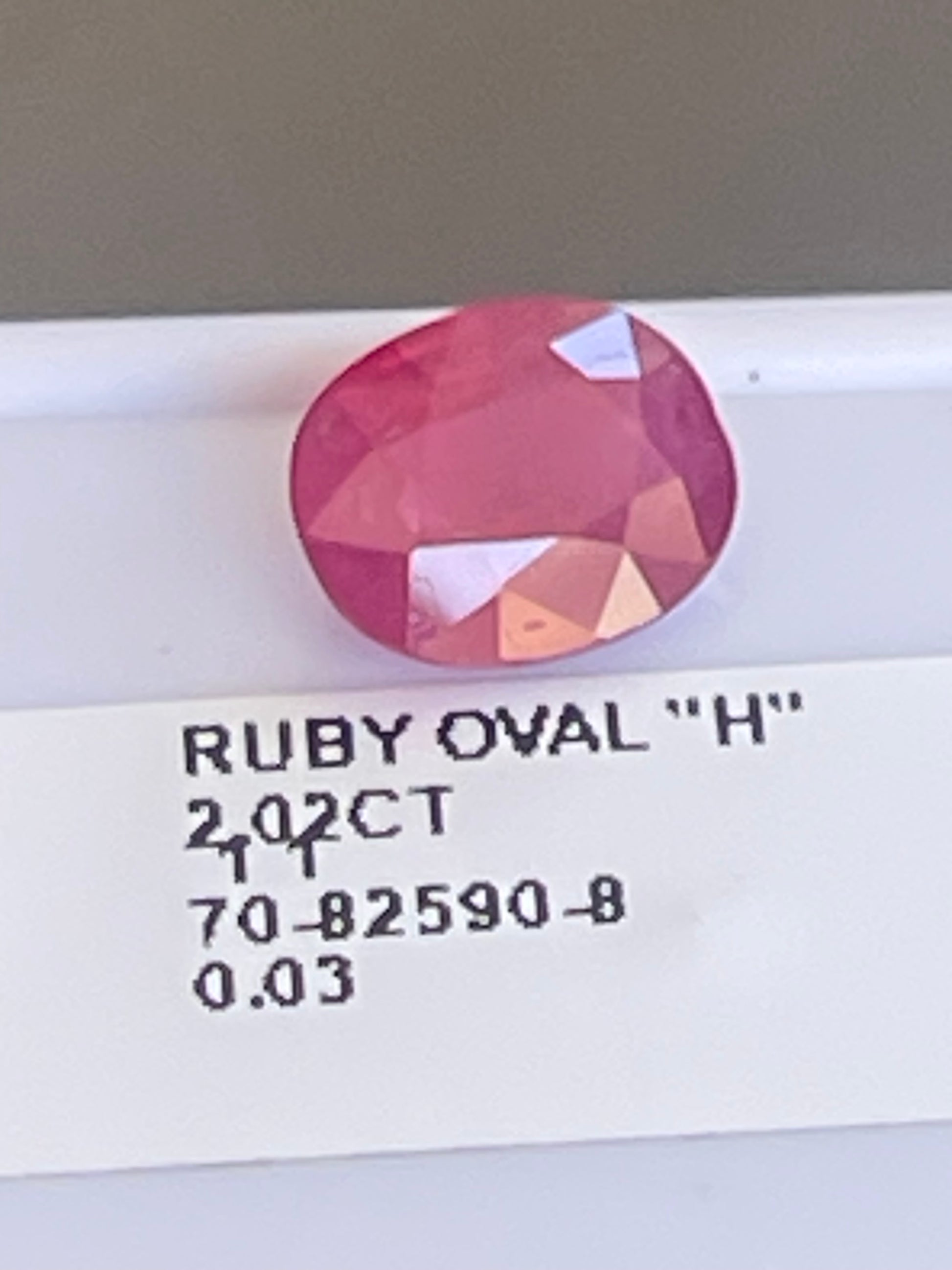 The 2.00 carat Oval Ruby features an oval shape and has undergone heat treatment. No other treatments have been applied to this gemstone.