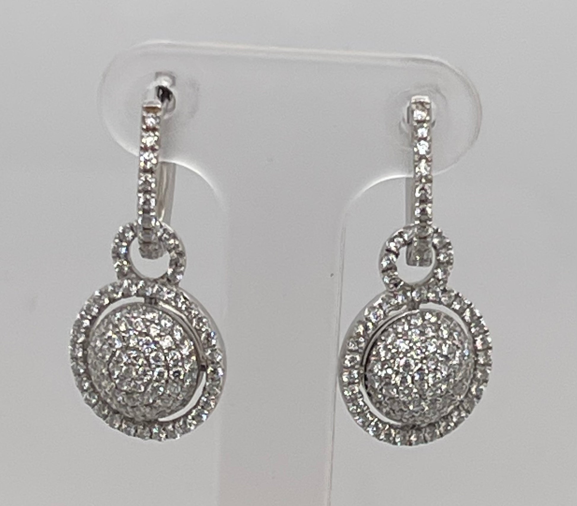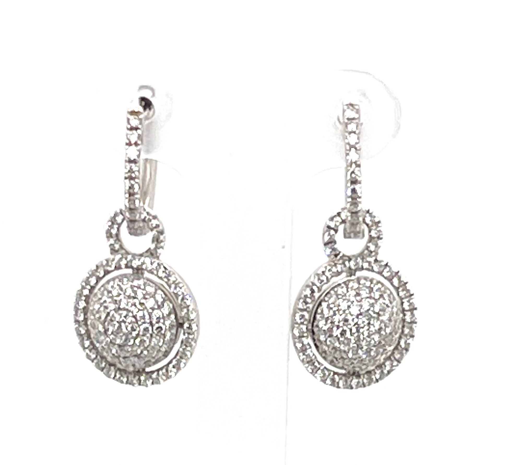 1.00 carat diamond earrings set in pave with 18k white gold are a stunning and elegant piece of jewelry. The diamonds, which are set in a pave setting, sparkle and shine beautifully against the white gold. The earrings are perfect for any occasion, from a casual day out to a special night on the town.