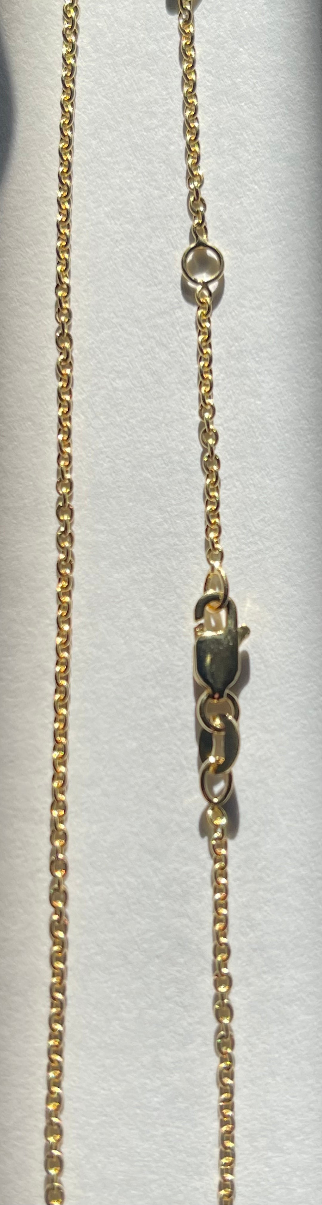 Made from 14kt Gold, this unique Rolo chain comes in a convenient adjustable length of 16-17-18 inches. The lobster closure makes it easy to customize the fit for any occasion. A perfect addition to any jewelry collection.14kt Gold