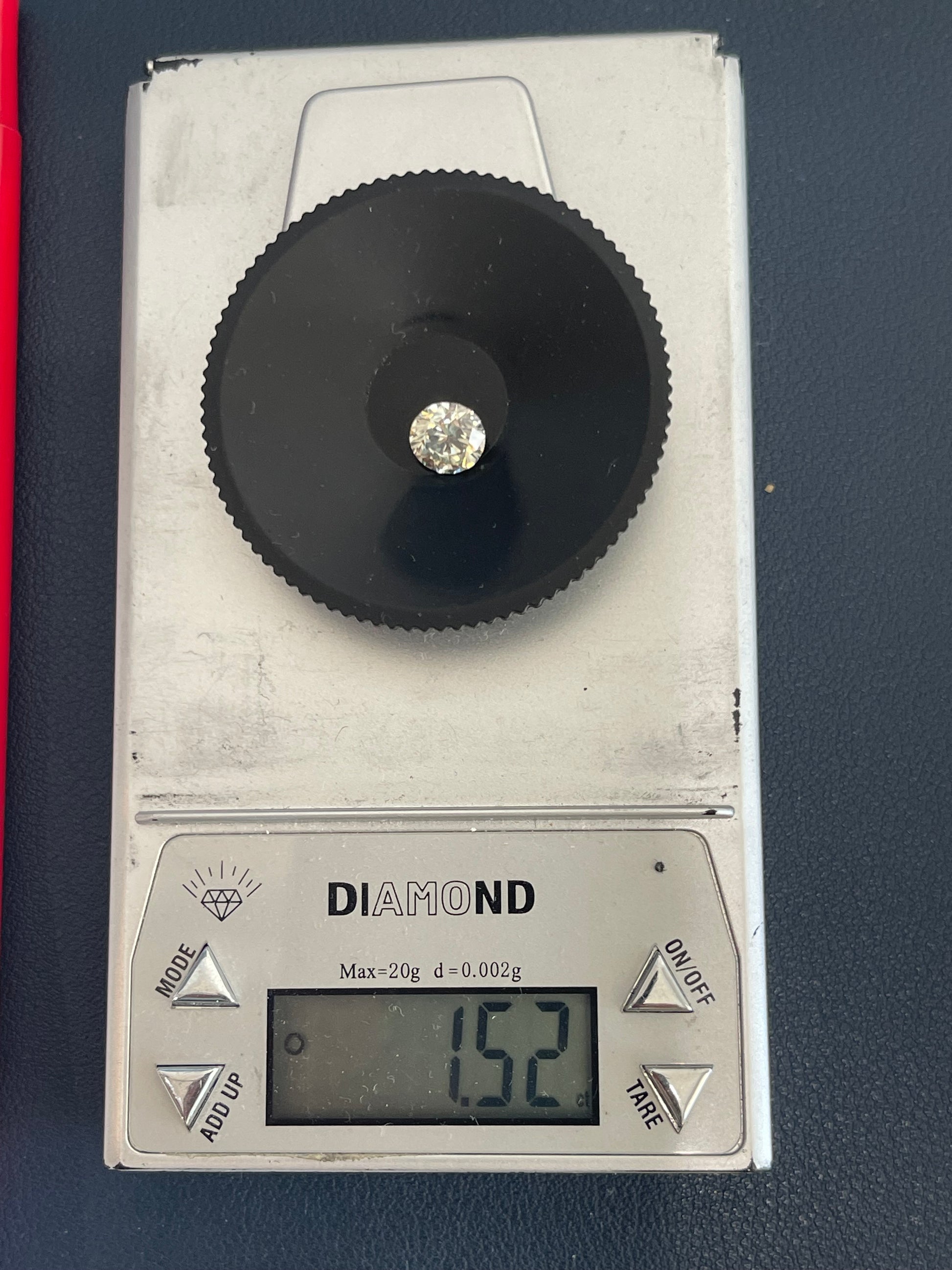 A round diamond, weighing 1.52 carats, with a captivating top light brown hue and exceptional brilliance. The diamond's warm, golden-brown color is complemented by its exceptional brightness, resulting in a gemstone that is both visually striking and full of life.