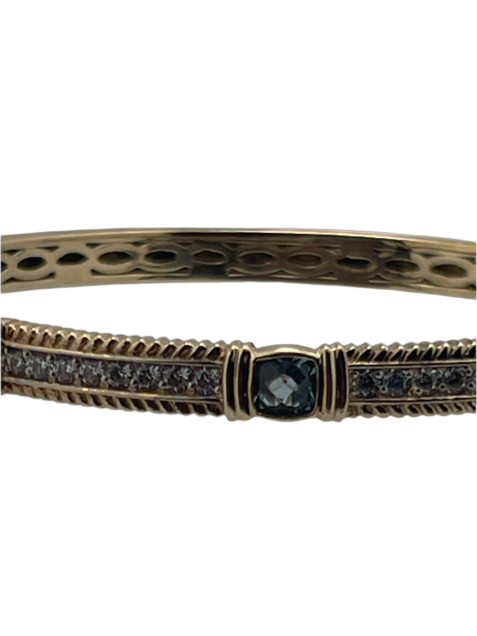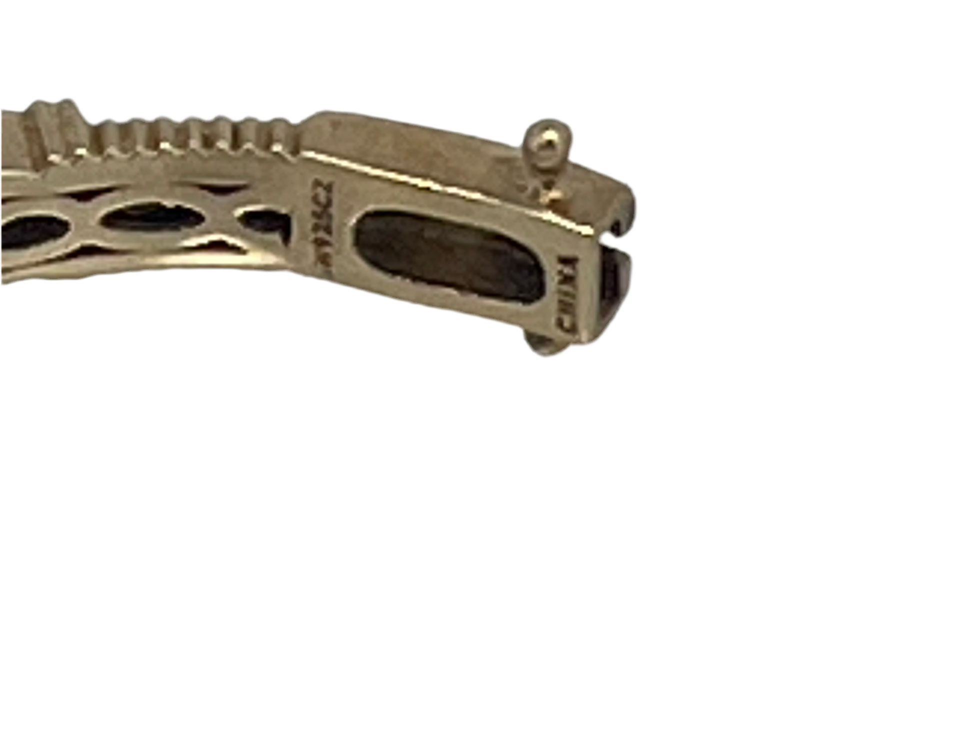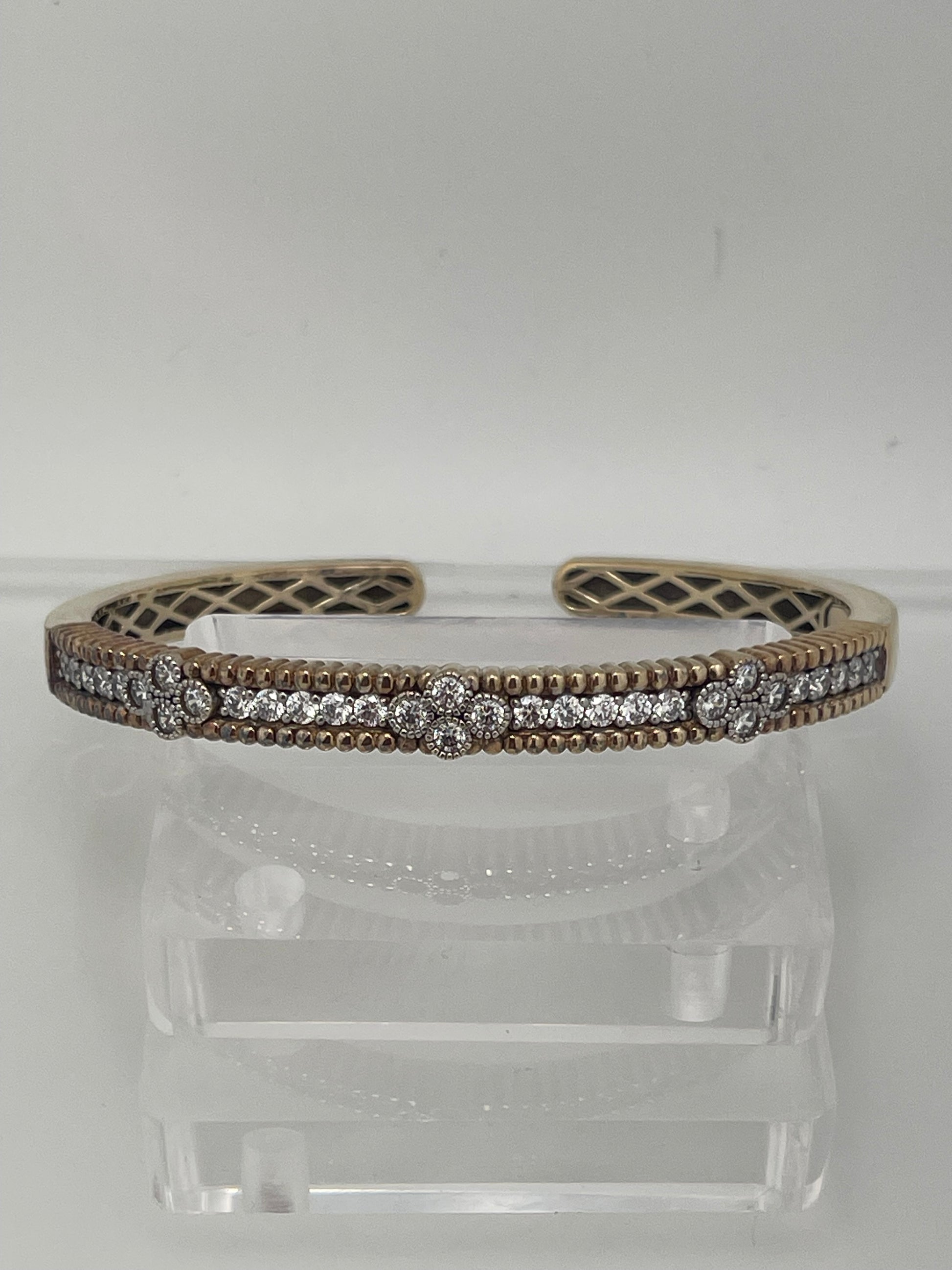 Crafted from high-quality sterling silver, this stunning bangle is plated with luxurious gold and adorned with sparkling cubic zirconia stones. Elevate any outfit with this elegant and timeless piece, perfect for both special occasions and everyday wear.