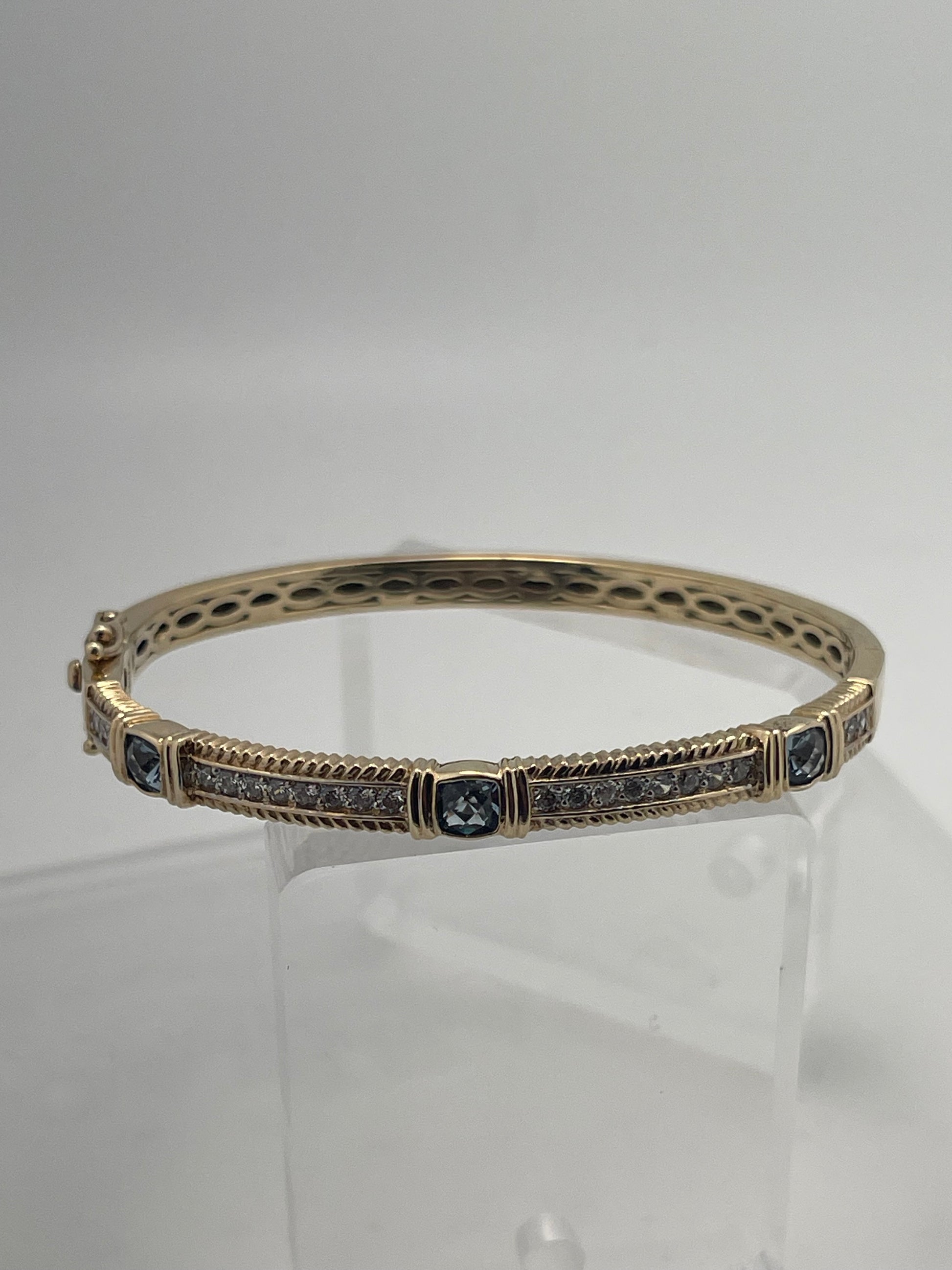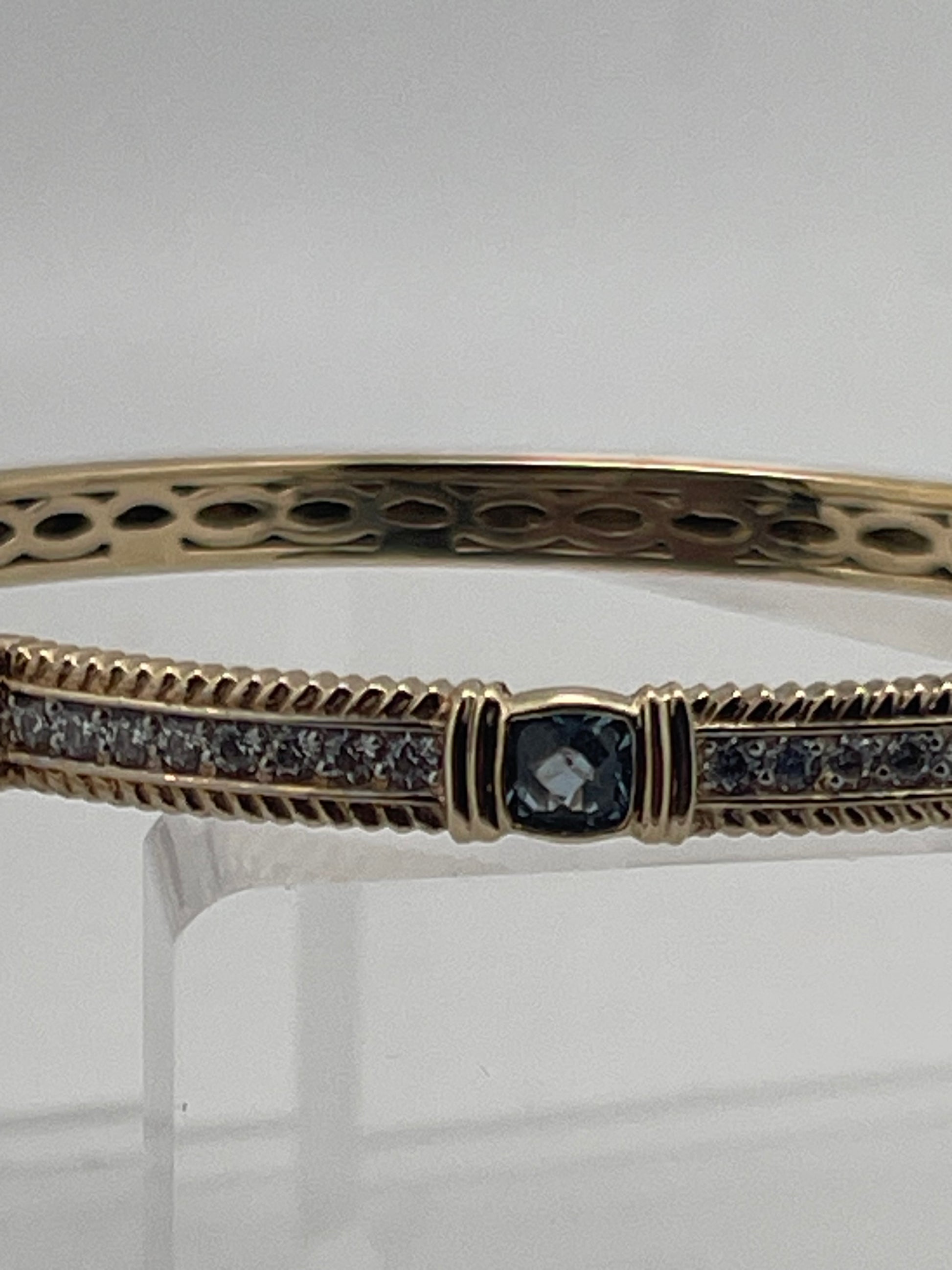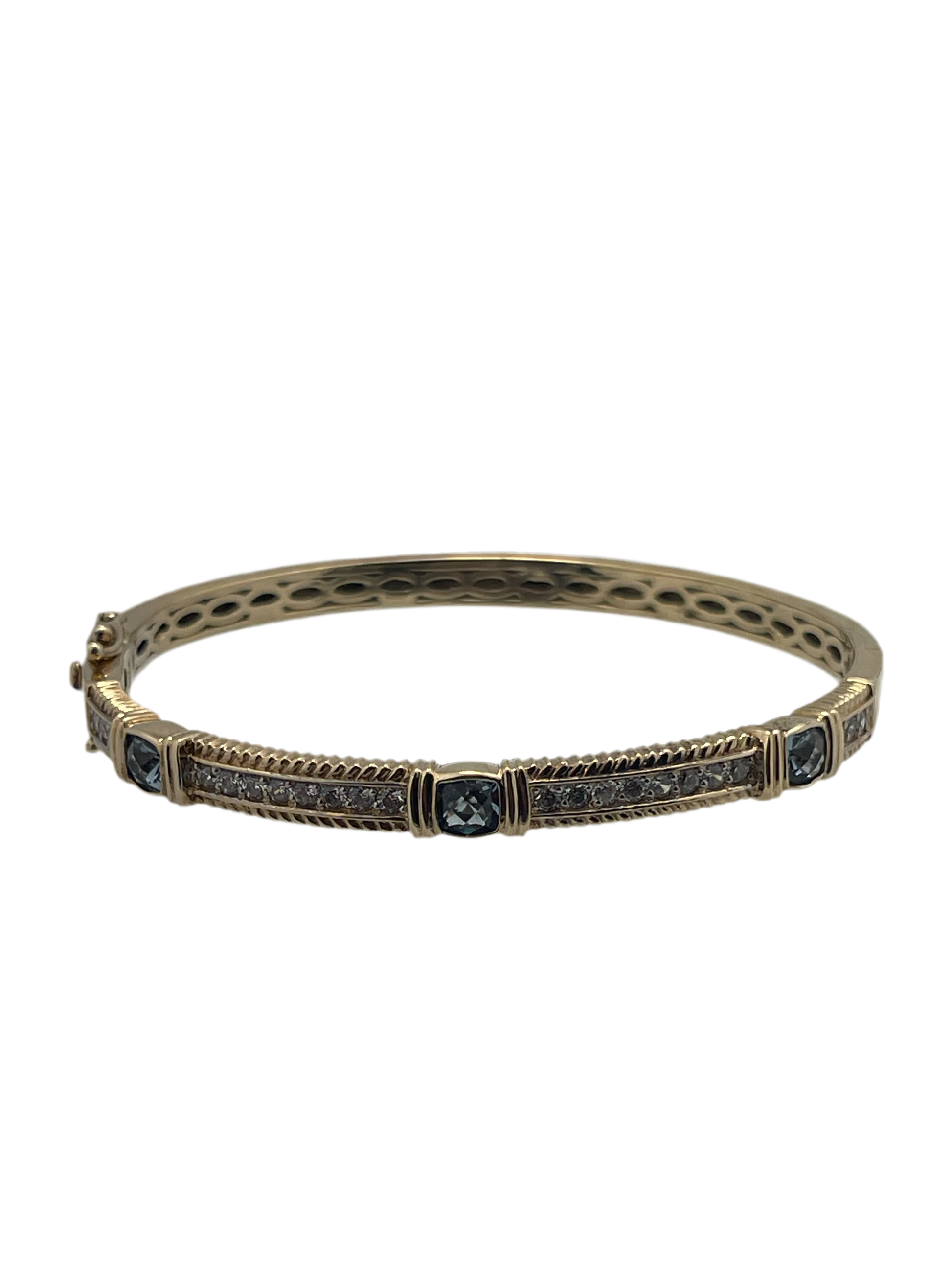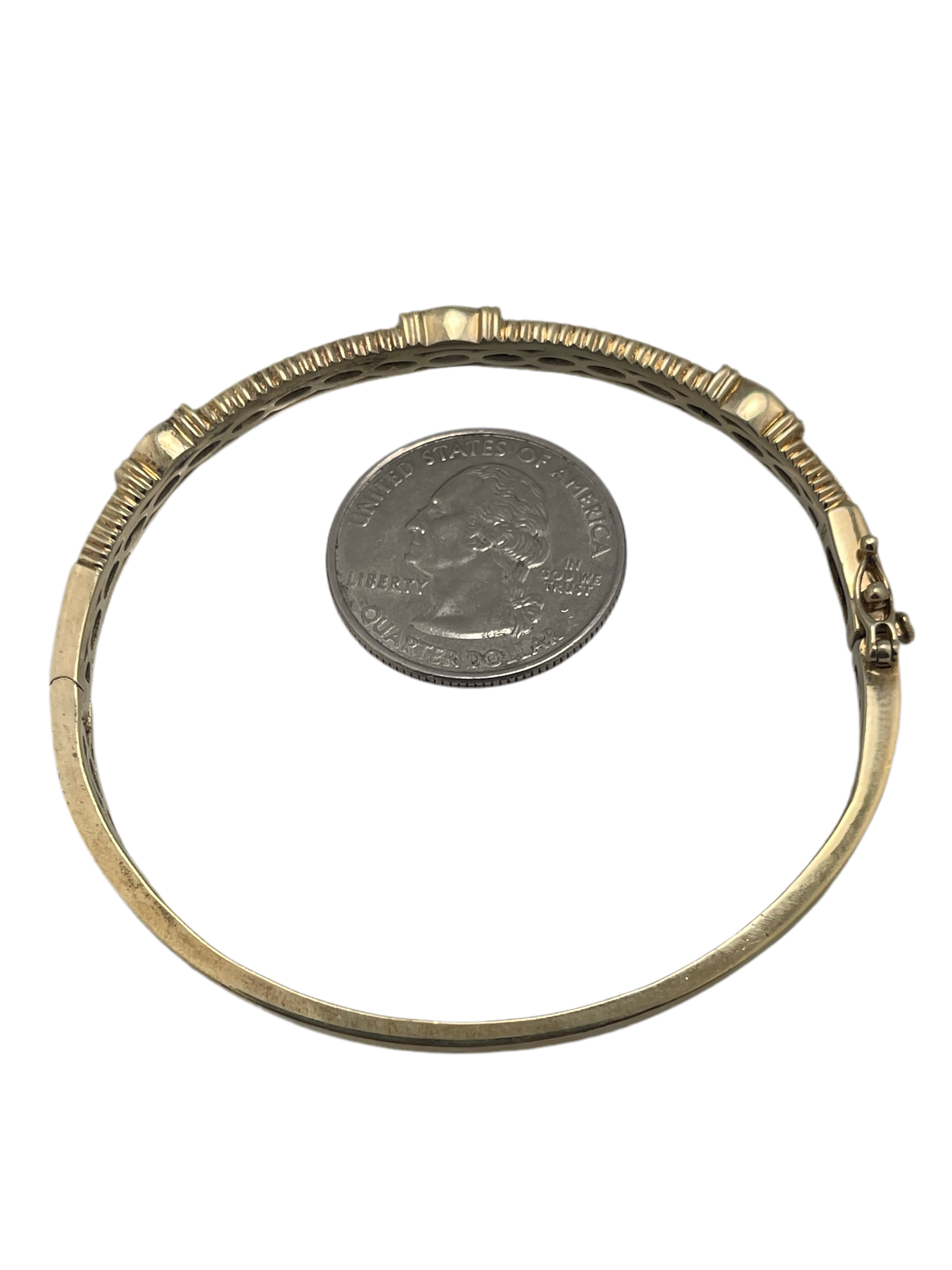 Crafted from high-quality sterling silver, this stunning bangle is plated with luxurious gold and adorned with sparkling cubic zirconia stones. Elevate any outfit with this elegant and timeless piece, perfect for both special occasions and everyday wear.