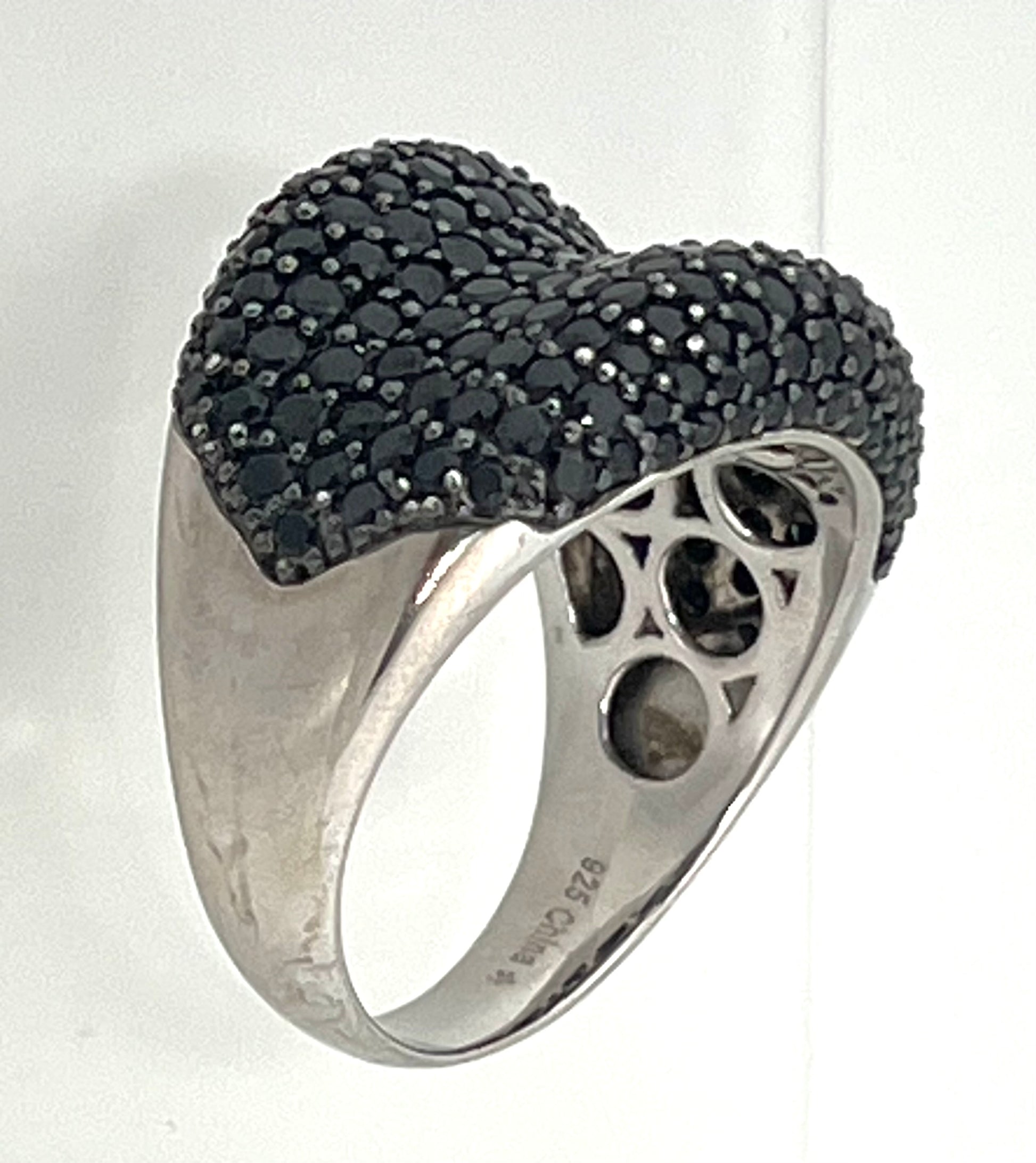 Crafted with precision, this stunning Sterling Silver Wave Dome Ring showcases a beautiful set of pave onyx, adding a touch of elegance and sophistication to any outfit.