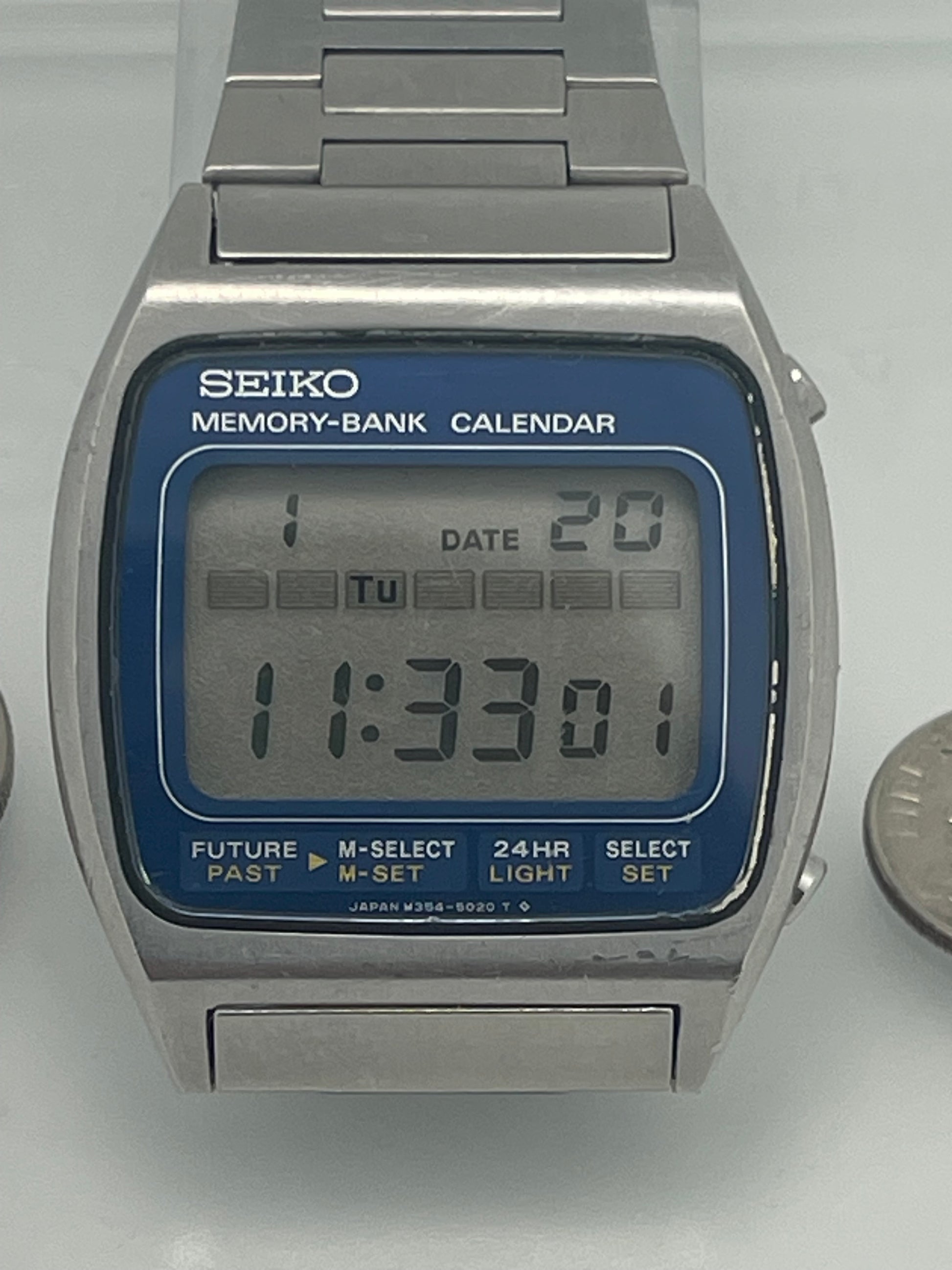 Vintage Seiko M354-5020 Memory-Bank Calendar. Condition is Pre-owned. Watch is working as it should however it is being sold as is as the service history is unknown. The silver bracelet is original. Please look at pictures and ask any questions. Thanks.